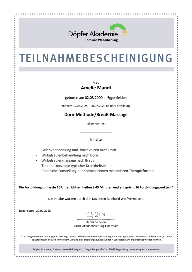- Manualtherapeutin obere Extremität (EFZ-zertifiziert) Hand, Schulter, Ellenbogen