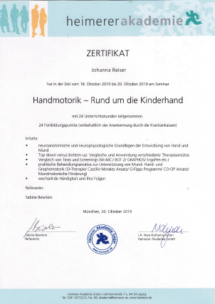 - Handmotorik – Rund um die Kinderhand, Hand- u. Graphomotorik, wechselnde Händigkeit und ihre Folgen